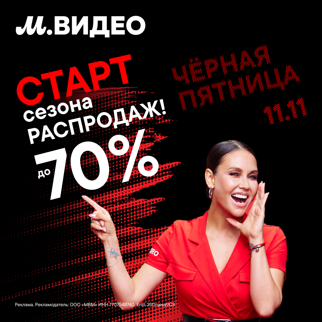 В период с 21.10.2025 г. и по 01.12.2025 г. включительно во всех магазинах «М.Видео», включая Интернет – магазин (покупки, совершенные на сайте www.mvideo.ru и в приложении), проводится рекламная акция «Чёрная пятница».